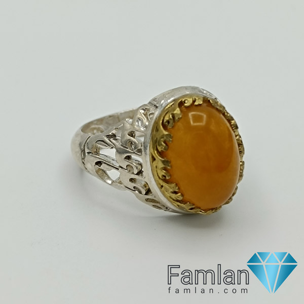انگشتر نقره مردانه عقیق پرتقالی رگه دار خطی با ذکر یا جواد کد 589
